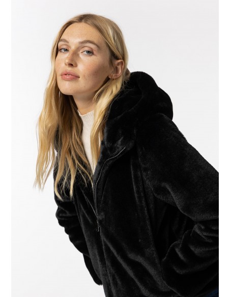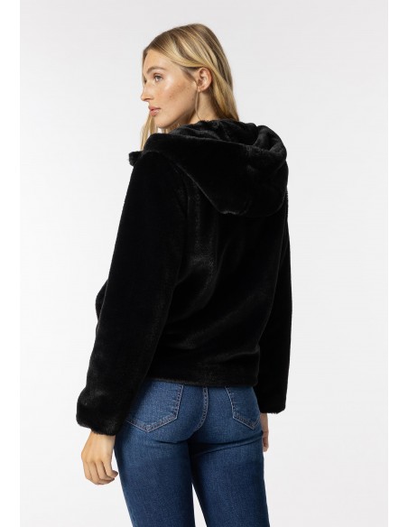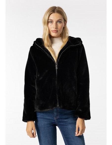 CHAQUETA DE PELO NEGRO CAPUCHA