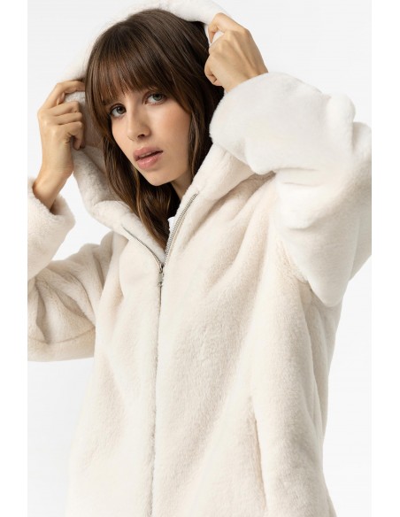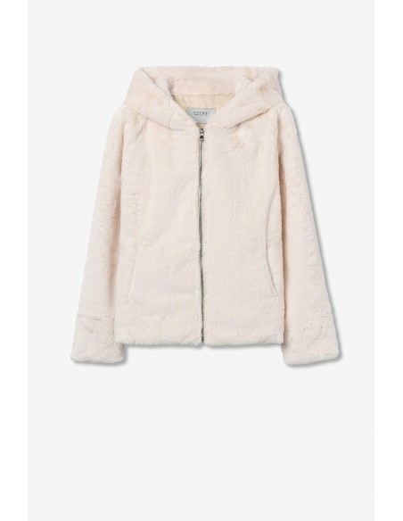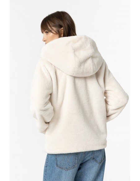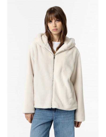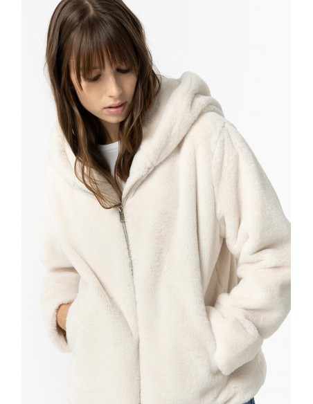 ABRIGO CORTO BLANCO DE PELO CON CAPUCHA