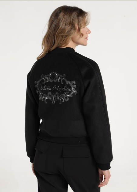Lo que realmente destaca de esta cazadora es su bordado de estilo barroco, que añade un toque de elegancia y distinción.