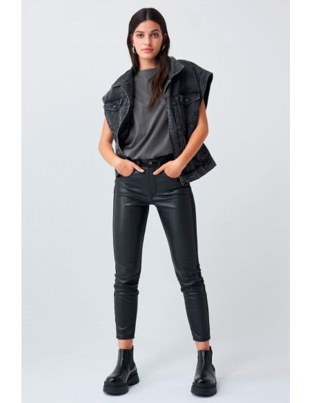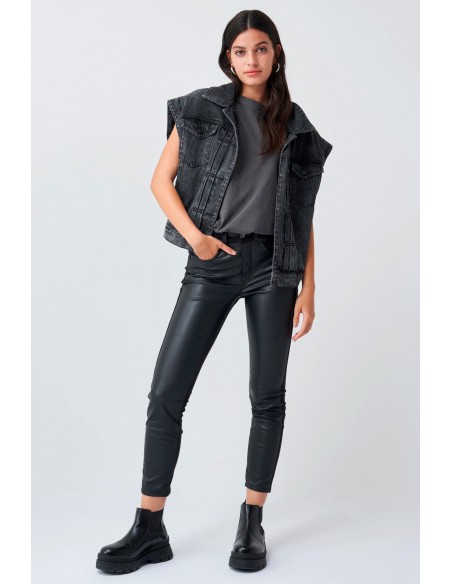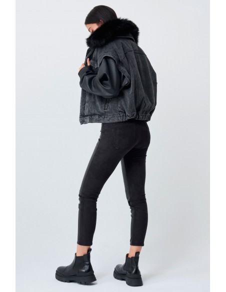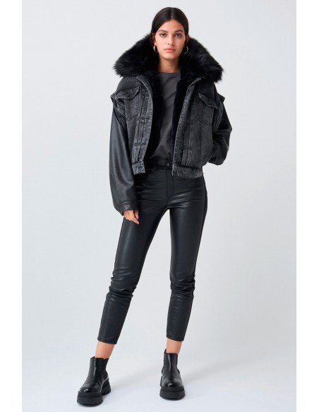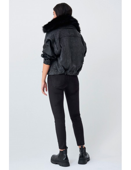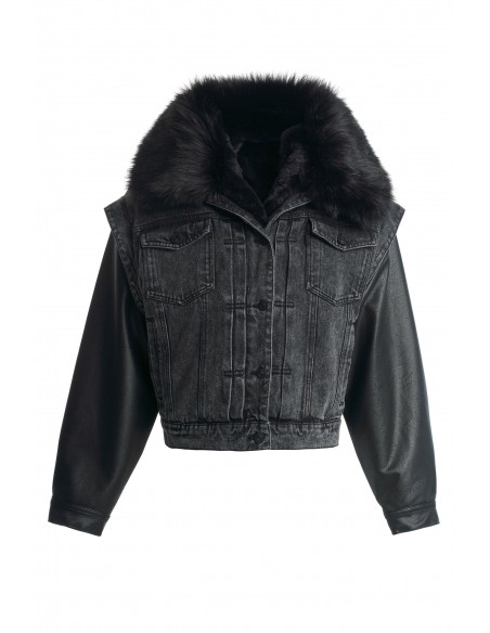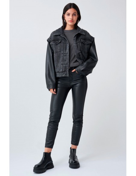 Cazadora vaquera oversize. Manga larga de polipiel desmontable.