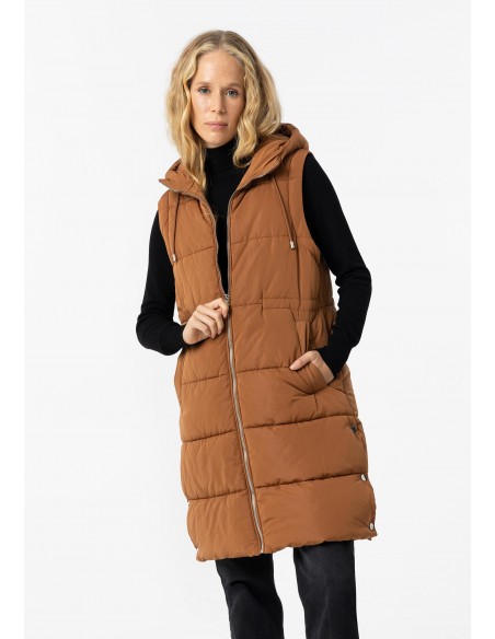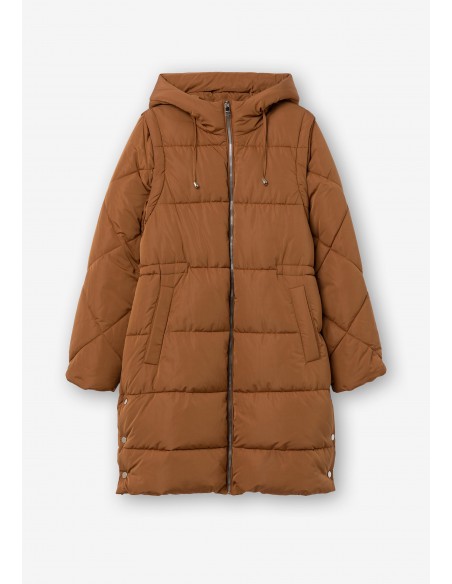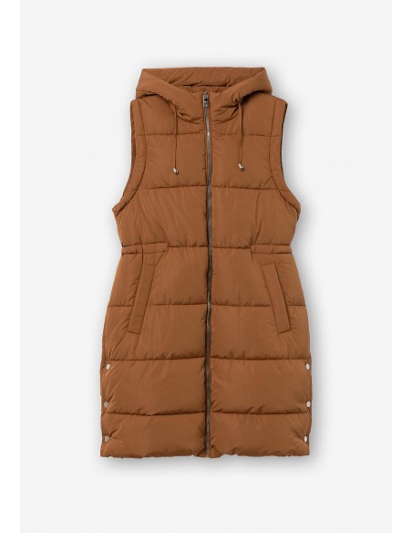 ABRIGO CHALECO ACOLCHADO MARRÓN CON CAPUCHA