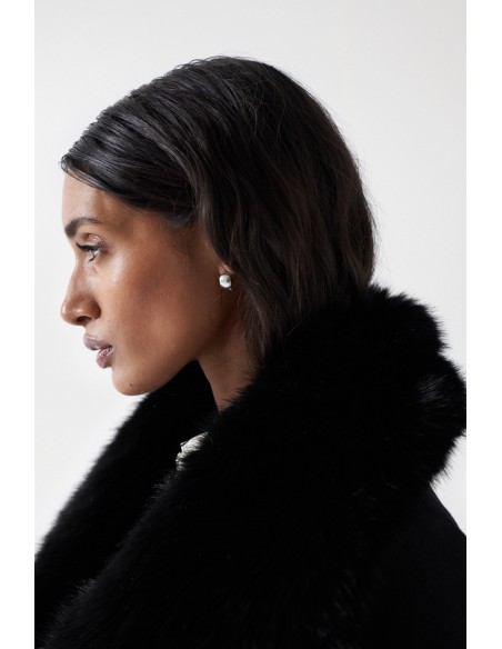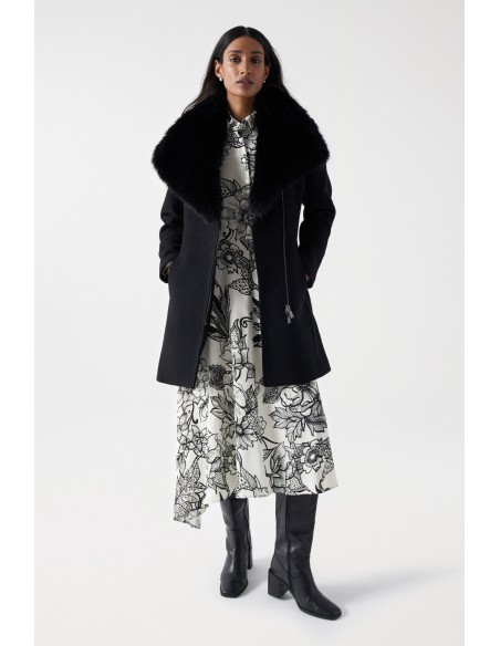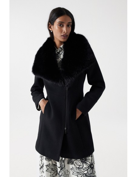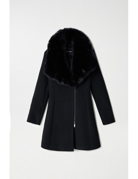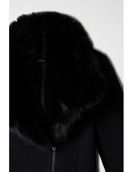ABRIGO NEGRO DE PAÑO GRACE CON PELO