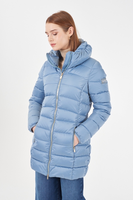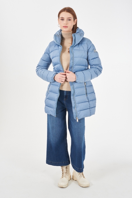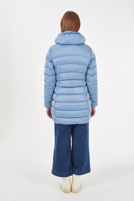 Diseñado para mantenerte abrigada en los días más fríos, este abrigo cuenta con un acolchado suave que proporciona calidez sin sacrificar la movilidad. Su color azul vibrante añade un toque de frescura a tu look invernal.