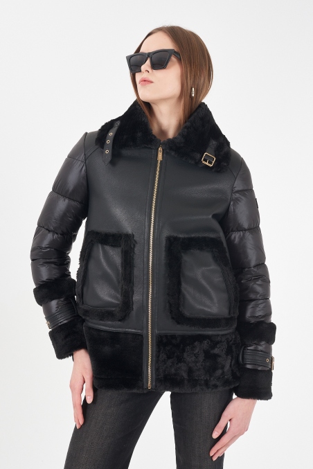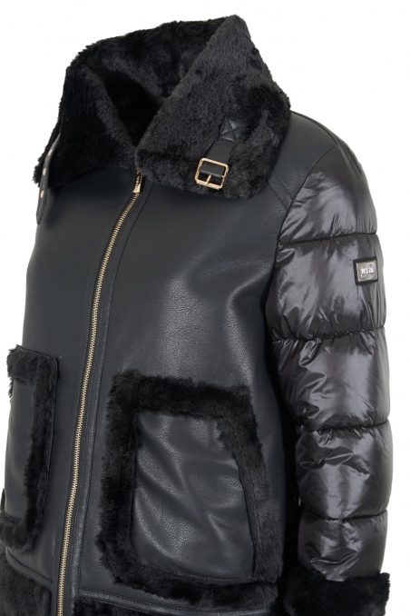 ABRIGO NEGRO ACOLCHADO COMBINADO POLIPIEL
