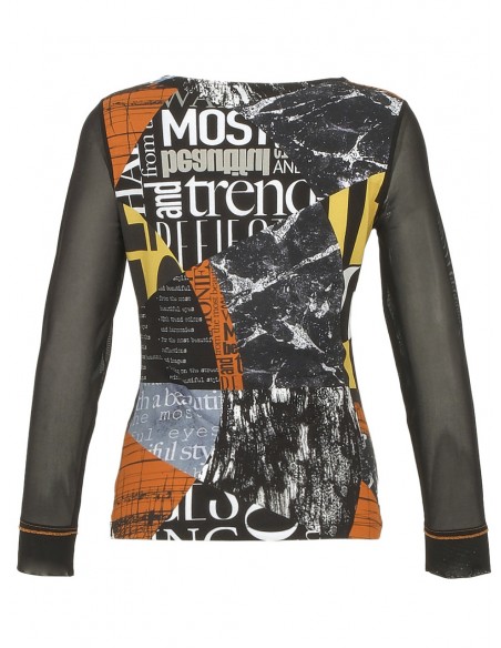 - Estampado abstracto con textos.
