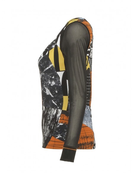- Mangas en tejido con ligera transparencia.