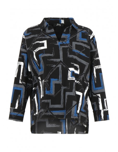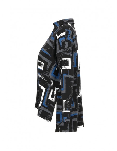 Esta blusa negra estampada es perfecta para quienes buscan un estilo único y moderno.
