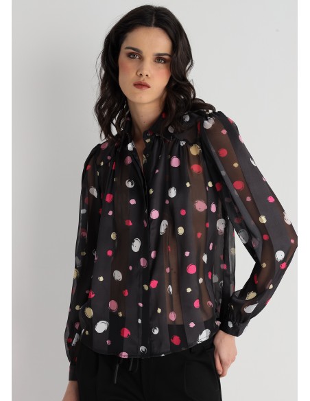 CAMISA NEGRA LUNARES MULTICOLOR
