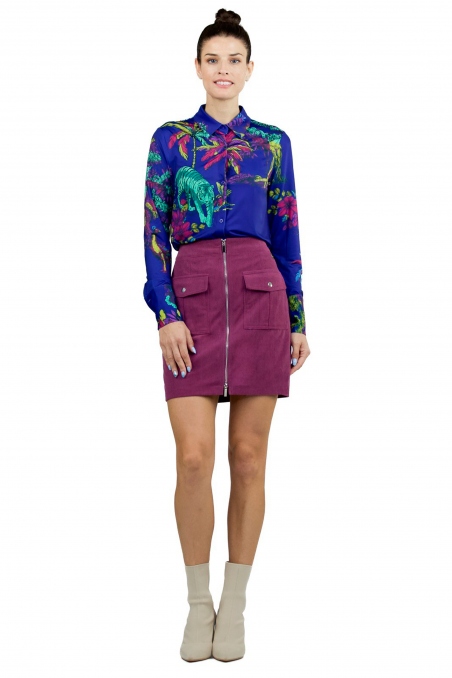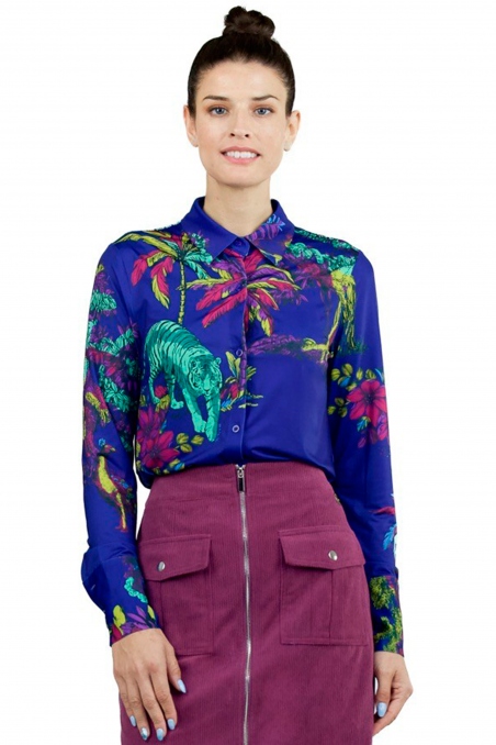 CAMISA AZUL SELVÁTICA MULTICOLOR