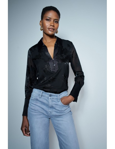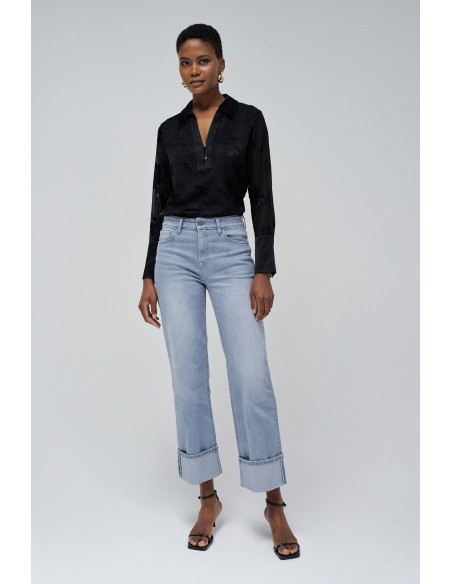 Sus detalles satinados y el cuello clásico añaden un toque de formalidad, haciéndola perfecta tanto para el entorno laboral como para un paseo.