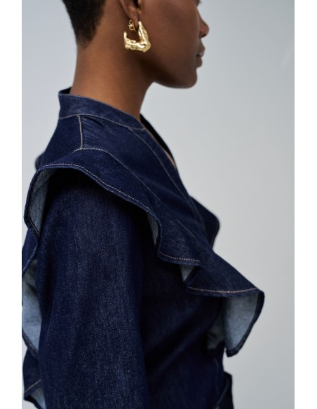 Los detalles como las costuras en contraste y los preciosos volantes del hombro a la cintura la convierten en una prenda clave de tu armario, ideal para combinar con todo.