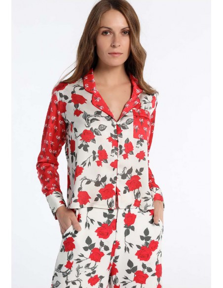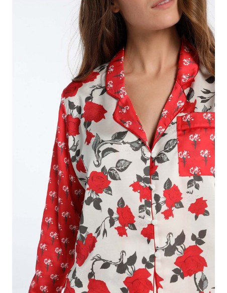 Tejidos combinados. Estampado con motivos florales.