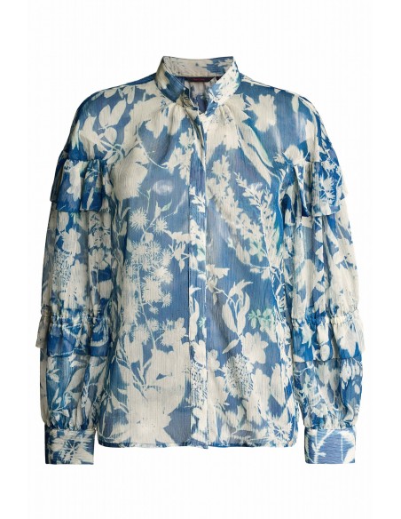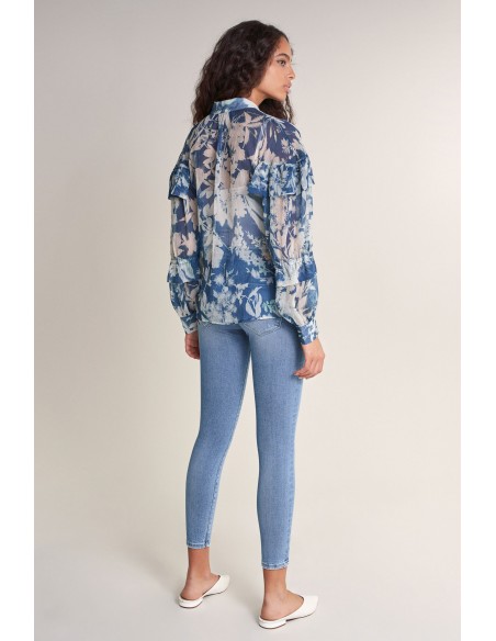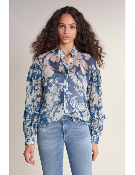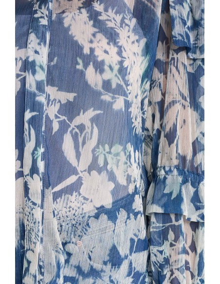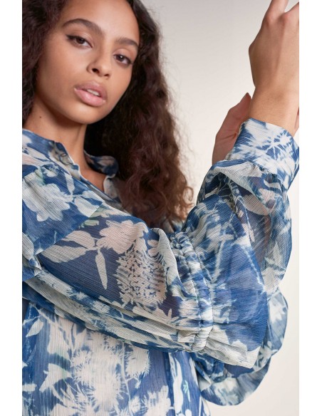 Túnica de manga larga con cuello mao estampada en patrón azul.