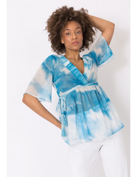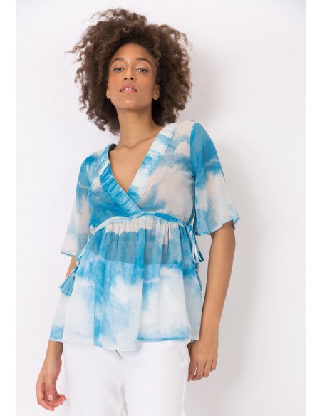 BLUSAS Y CAMISETAS BLUSA COMME UN SOUFFLE FLORAL Paul Brial SOUFFLE 69,99 € 99,99 € Blusa de manga 3/4 con cuello redondo. Mangas de tul de colores con volantes. Elástico en cintura con volante fruncido. Estampado con motivo floral abstracto. Color: Multi Ver