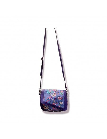 Bolso pequeño tipo bandolera con asa larga ajustable.