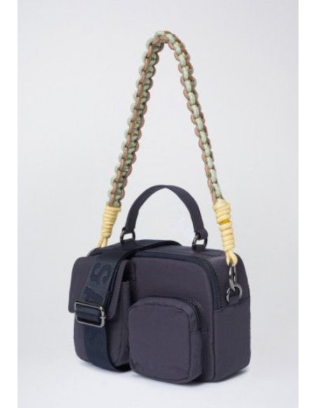 Opción de asa corta trenzada tricolor o asa larga de nailon con branding Salsa.