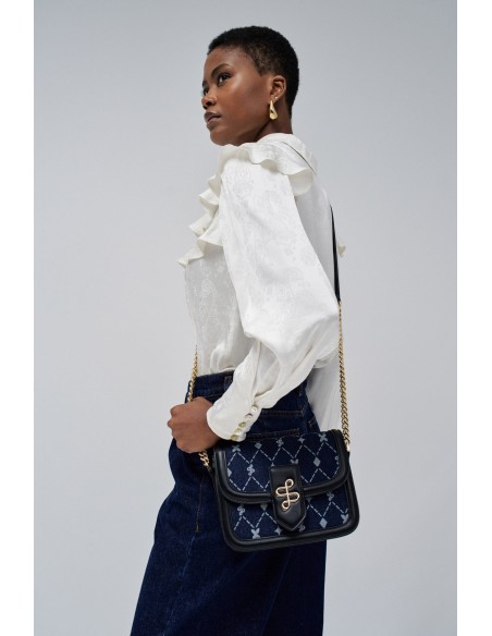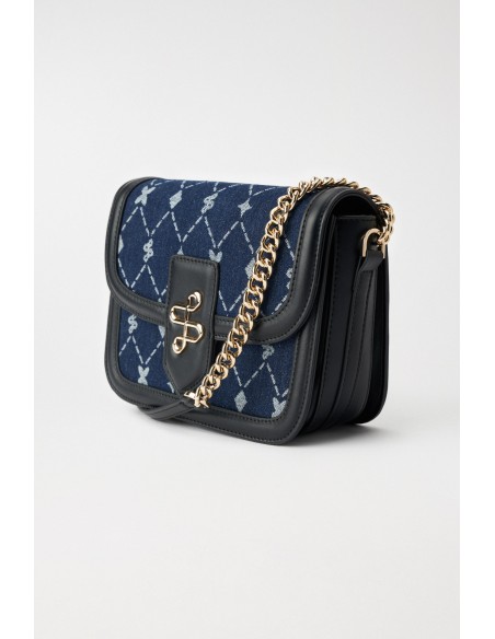 Este bolso cruzado en denim azul estampado es el complemento perfecto para cualquier outfit.