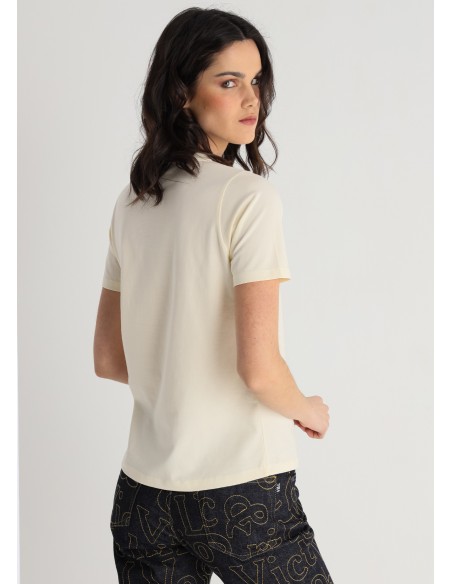 Esta camiseta está hecha de un suave y cómodo tejido beige natural que te hará sentir genial todo el día.