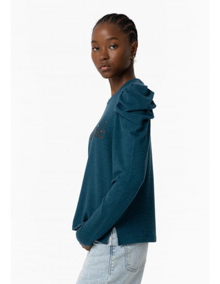 CAMISETA ABULLONADA TACTO SUAVE AZUL PETRÓLEO