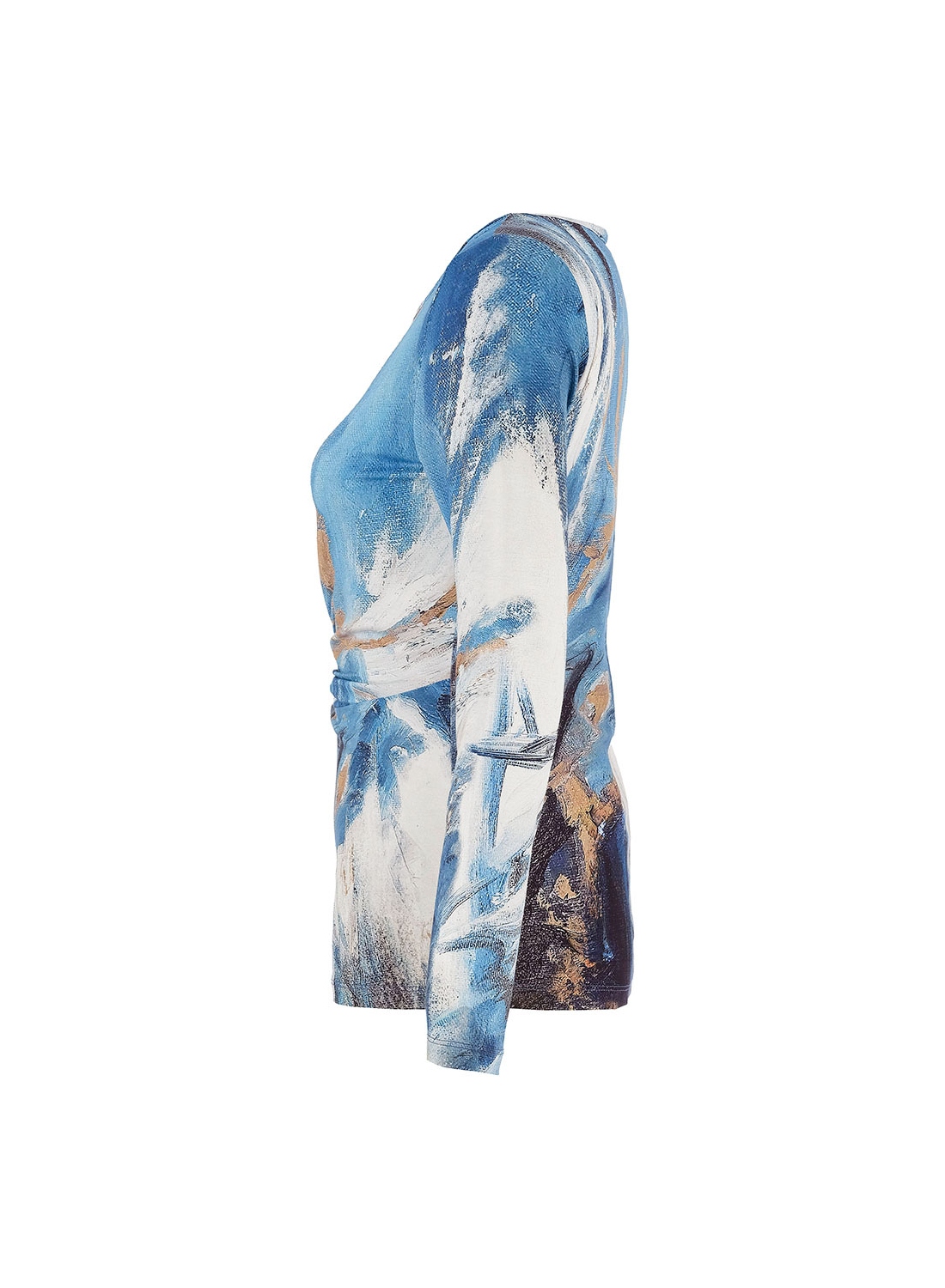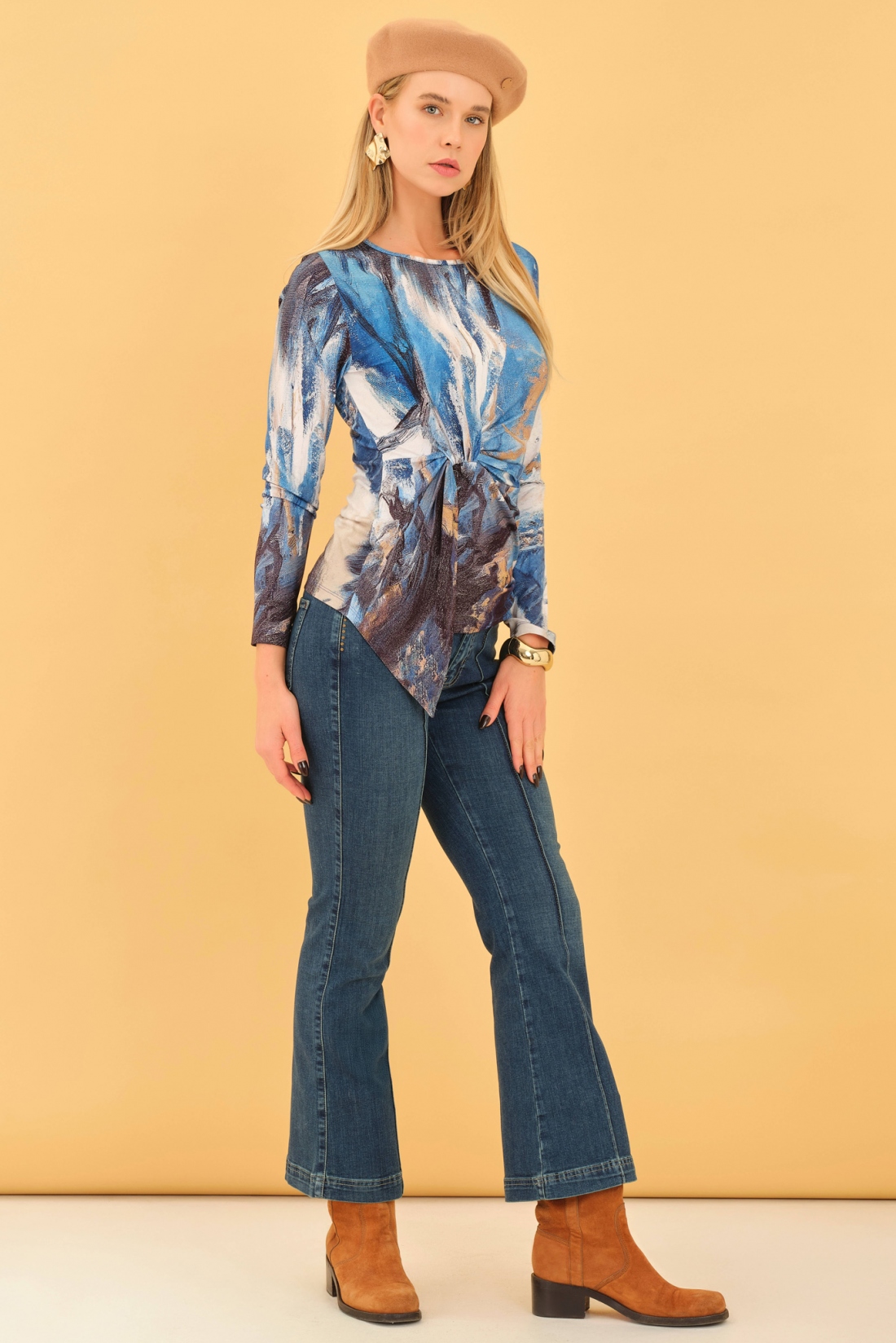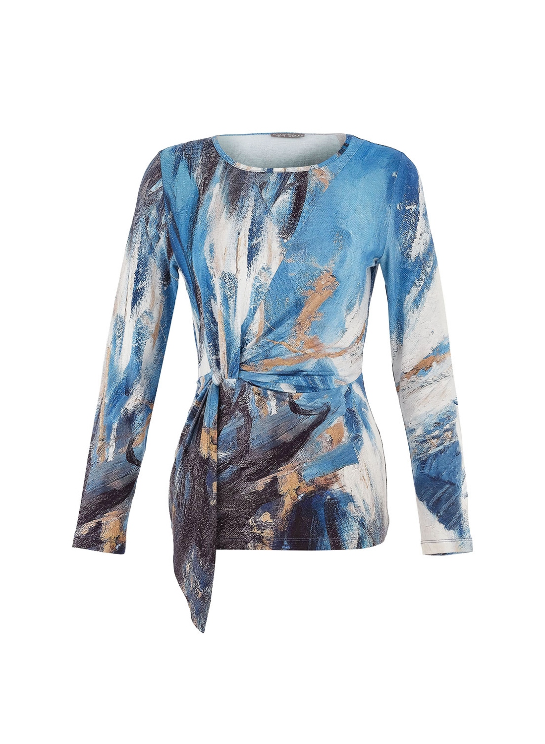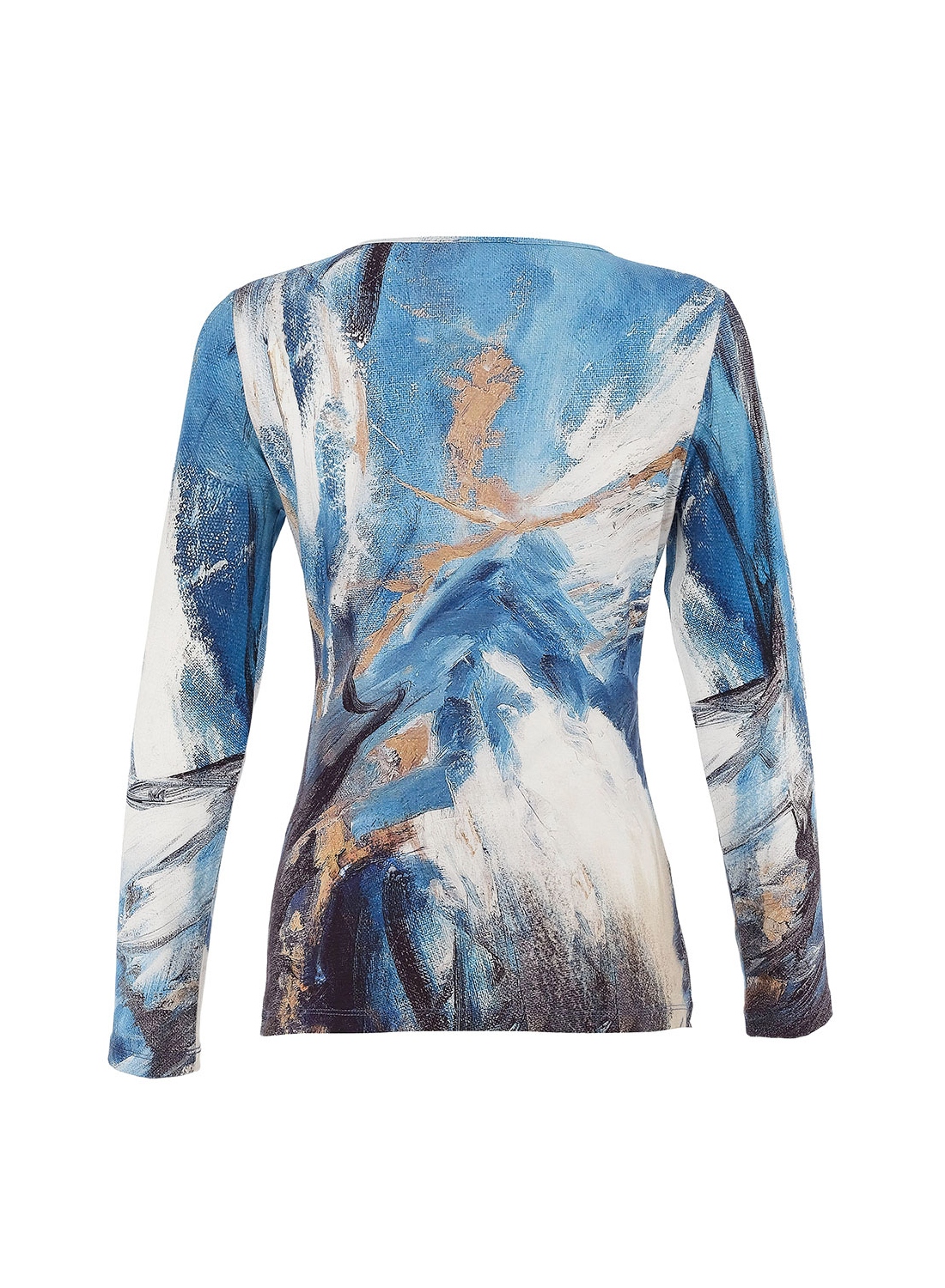 Descubre la elegancia y el estilo contemporáneo con nuestra blusa diseñada con un impresionante estampado abstracto que captura la atención y resalta tu personalidad única.