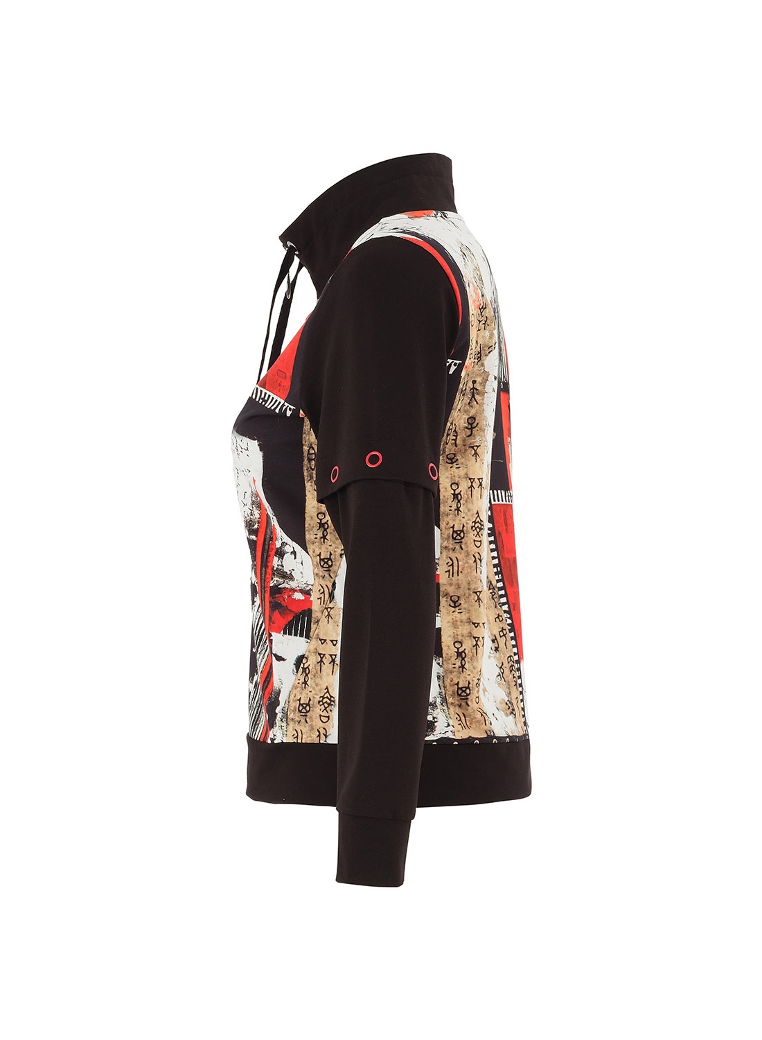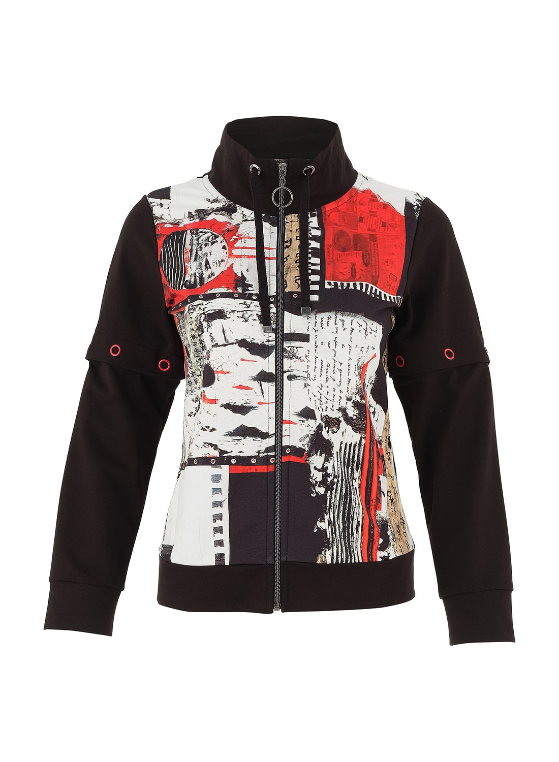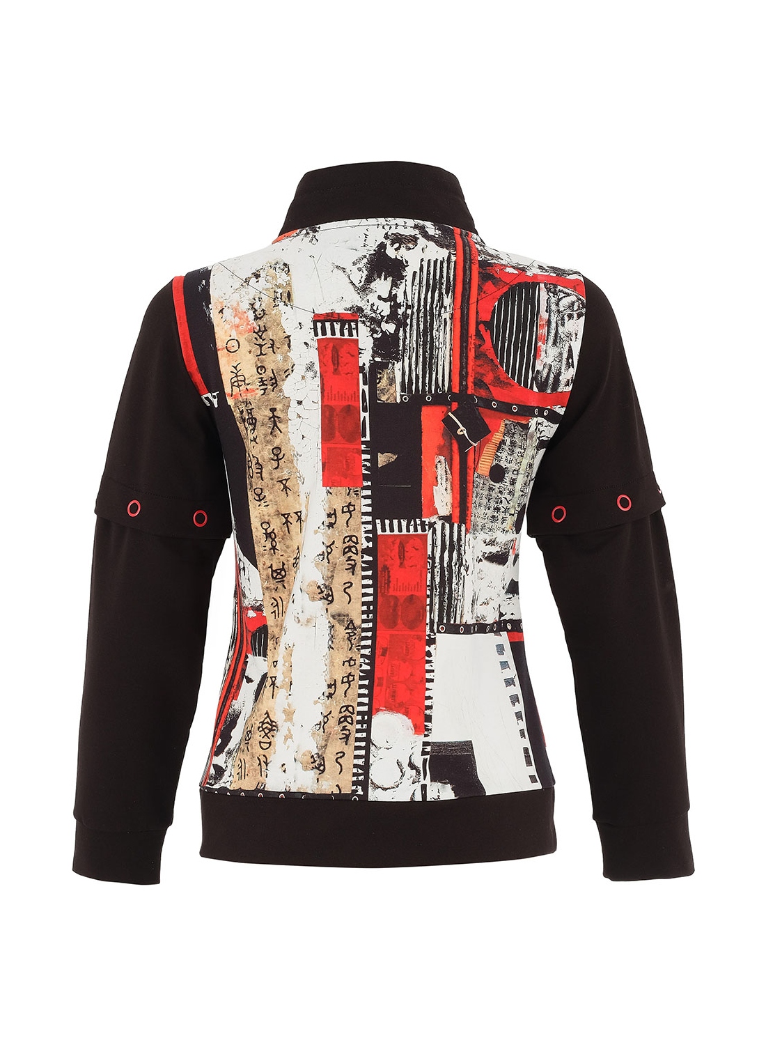 Con un estampado abstracto que destaca, esta prenda no solo te mantendrá abrigada, sino que también te hará lucir única y a la moda.