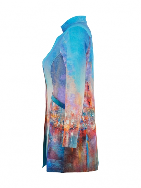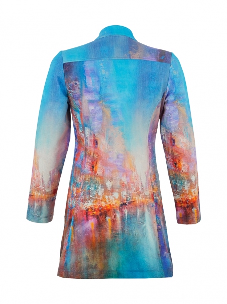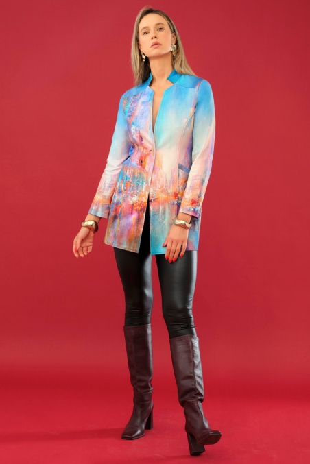 Descubre la fusión perfecta entre arte y moda con nuestra chaqueta, adornada con un impresionante diseño de pintura abstracta.