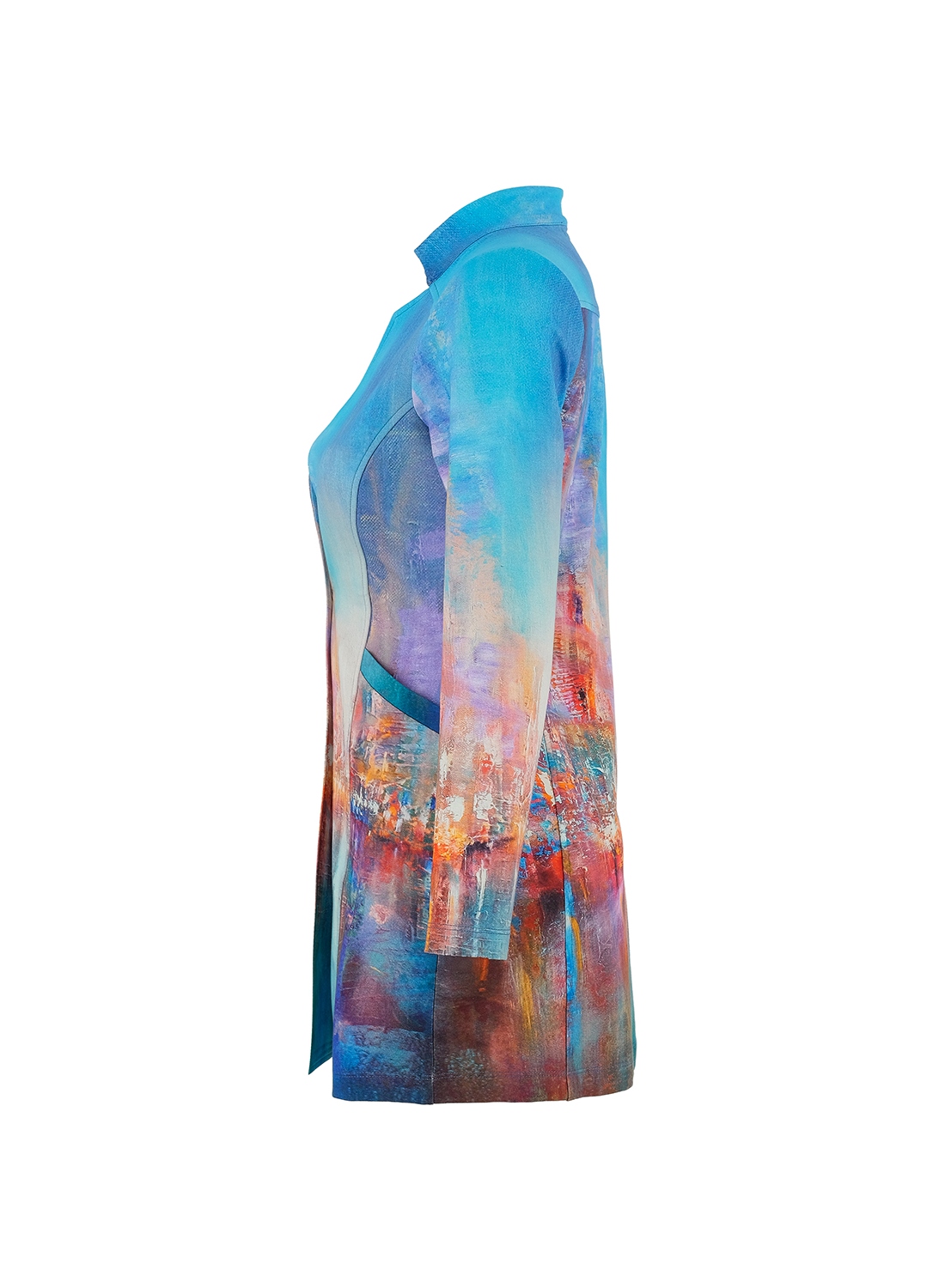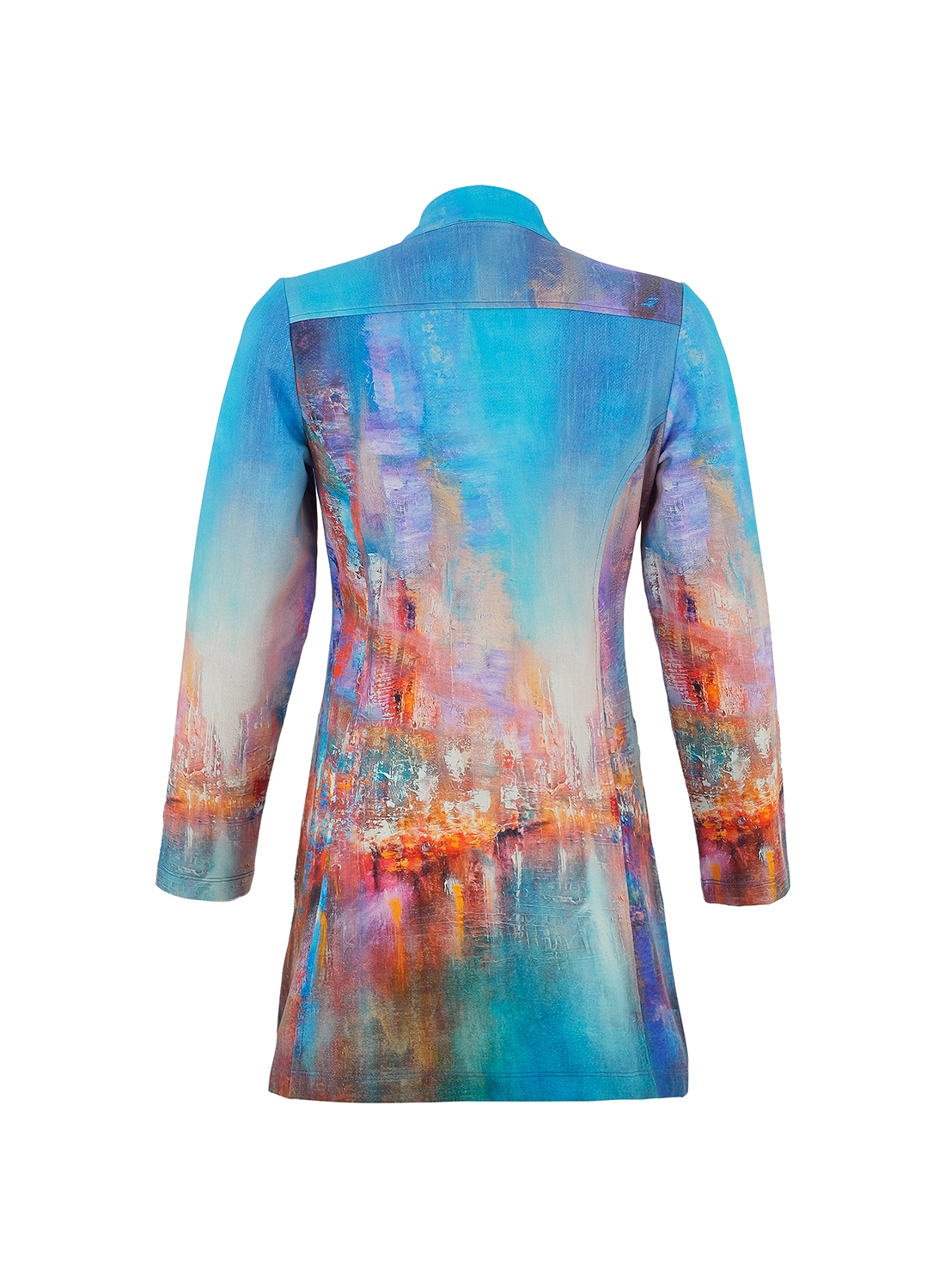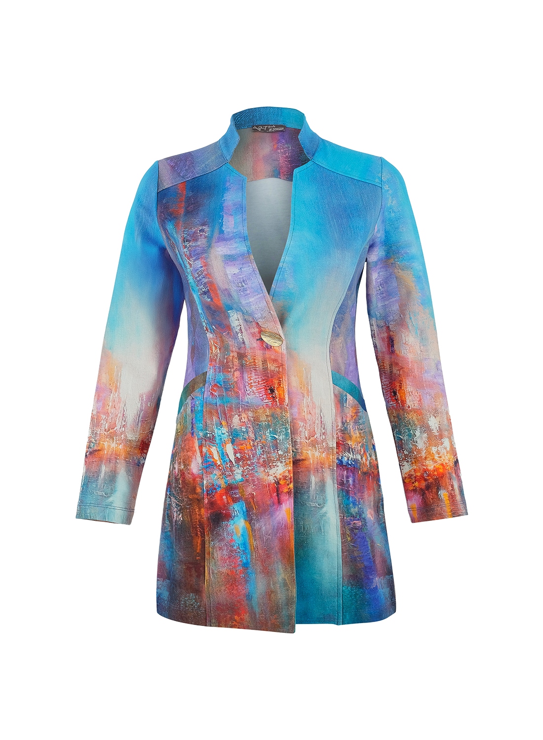 Descubre la fusión perfecta entre arte y moda con nuestra chaqueta, adornada con un impresionante diseño de pintura abstracta.