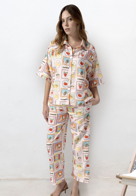 - Estampado multicolor con motivos frutales
