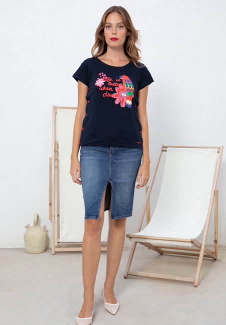 Dale un toque único a tu guardarropa con nuestra camiseta de diseño tropical multicolor.