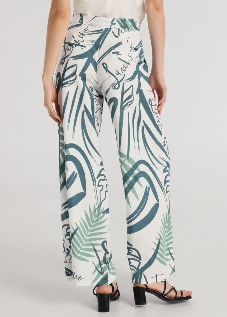 Descubre la frescura y el estilo con nuestros pantalones de estampado selvático en tonos verdes, que aportan un toque tropical y vibrante a tu atuendo.