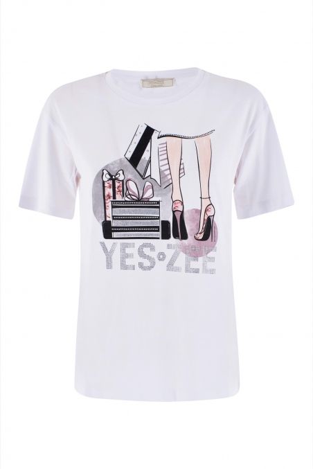 Dale un toque fresco a tu look con nuestra camiseta blanca con detalles en brillo.