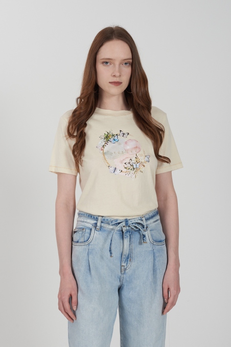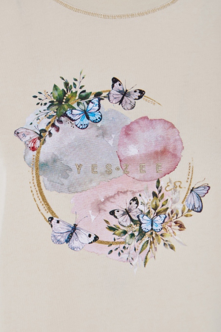 CAMISETA BEIGE MARIPOSAS CON PEDRERÍA