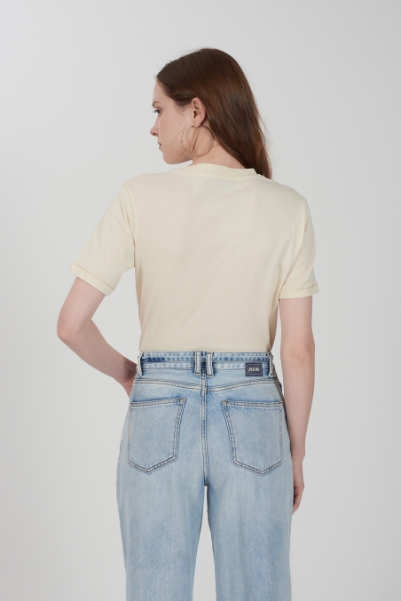 Confeccionada en una suave mezcla de algodón, esta camiseta ofrece una comodidad excepcional durante todo el día. Además, es fácil de combinar con tus jeans favoritos o una falda elegante.