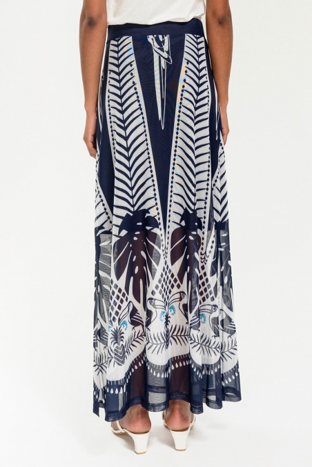 FALDA LARGA TROPICAL TUCANES MARINO Y BLANCO