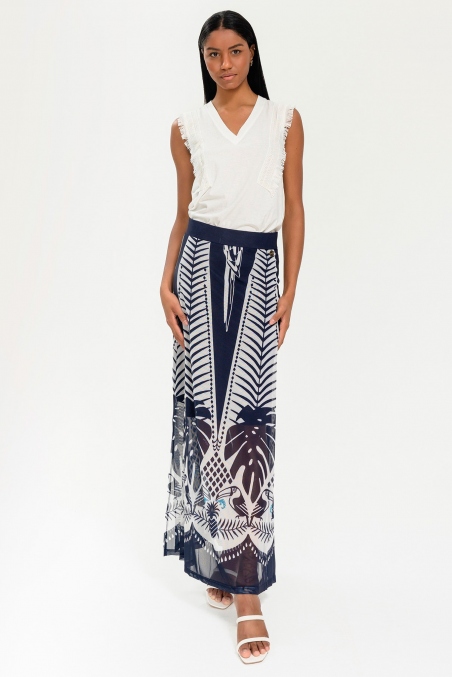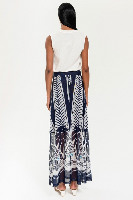 Descubre la elegancia y frescura de nuestra falda larga con estampado tropical.