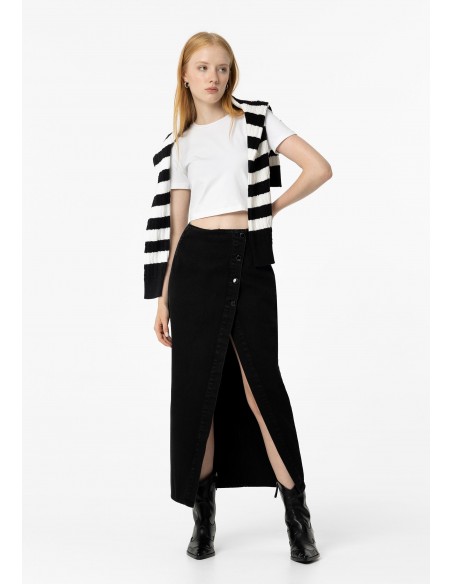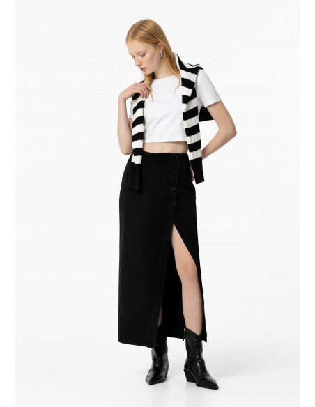 FALDA MIDI DENIM NEGRA