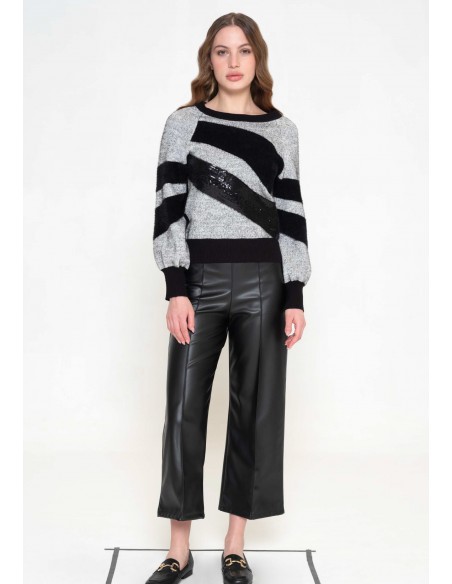 Con su diseño en gris y negro, y las elegantes rayas negras, es ideal para cualquier ocasión, ya sea un día casual o una salida nocturna.