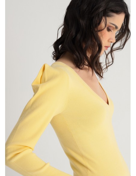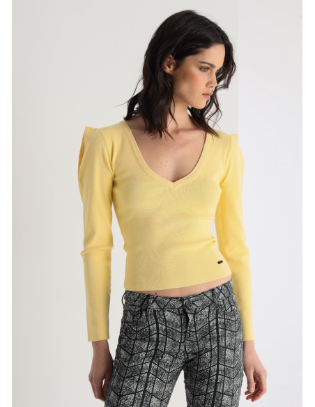 Este suéter amarillo es la prenda perfecta para añadir un toque de color a tu armario.