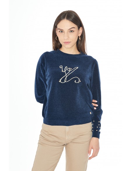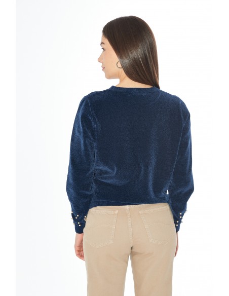 Este suéter azul marino es la prenda perfecta para añadir un toque de elegancia a tu armario.