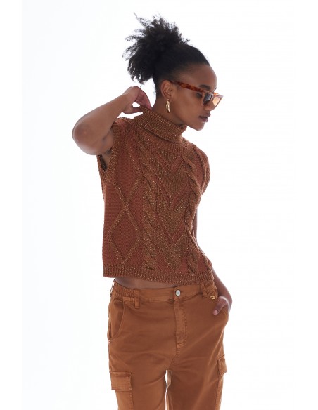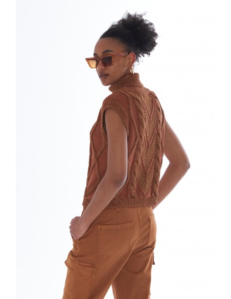 Este jersey de punto sin mangas permite una gran libertad de movimiento, mientras que el tejido suave y acogedor te mantendrá abrigada.
