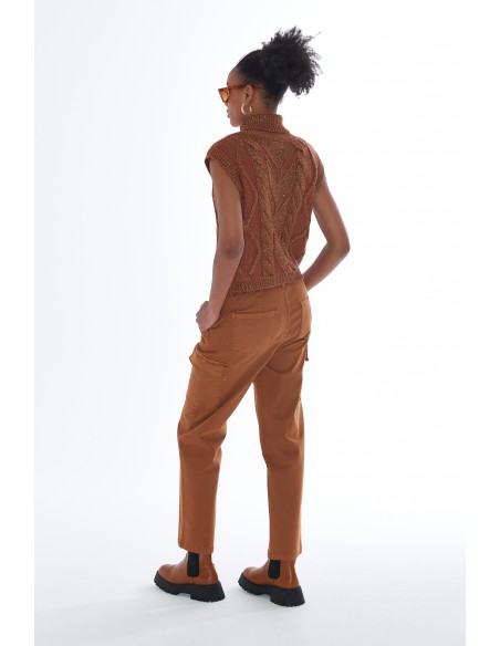 Con su color marrón tostado, combina fácilmente con tus pantalones favoritos, creando un look casual y chic.