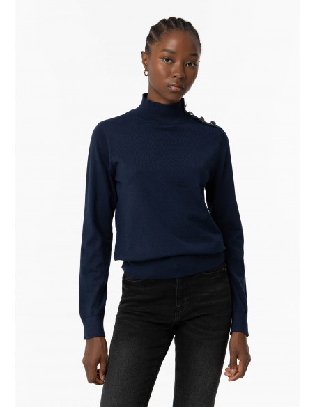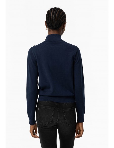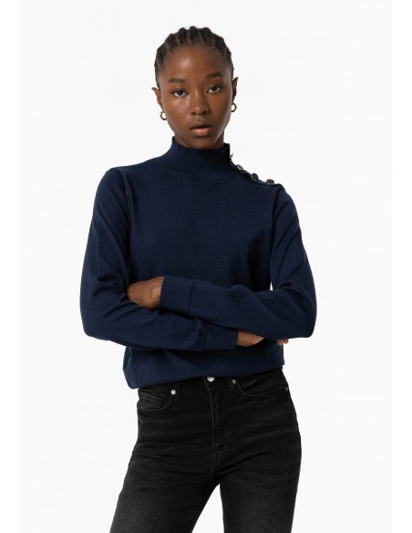 Este suéter de cuello alto en color azul marino es la prenda perfecta para mantenerte abrigada y con estilo.