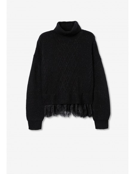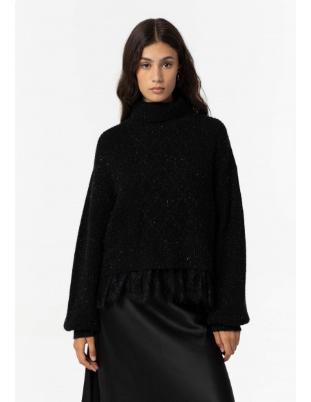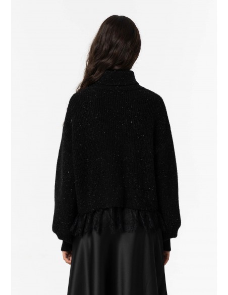 JERSEY DE PUNTO NEGRO CON BRILLO Y ENCAJE
