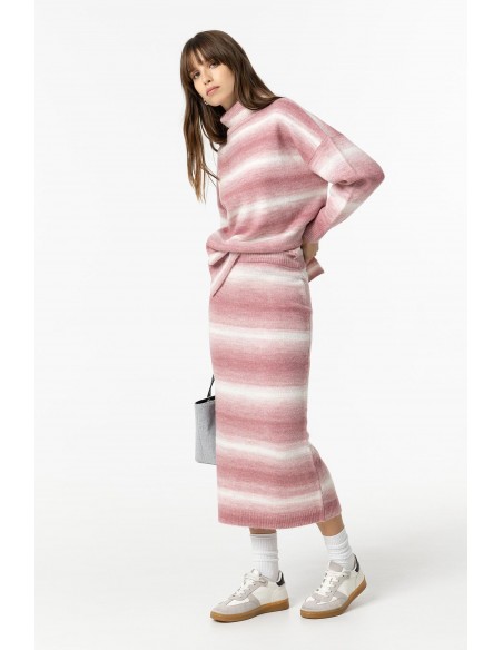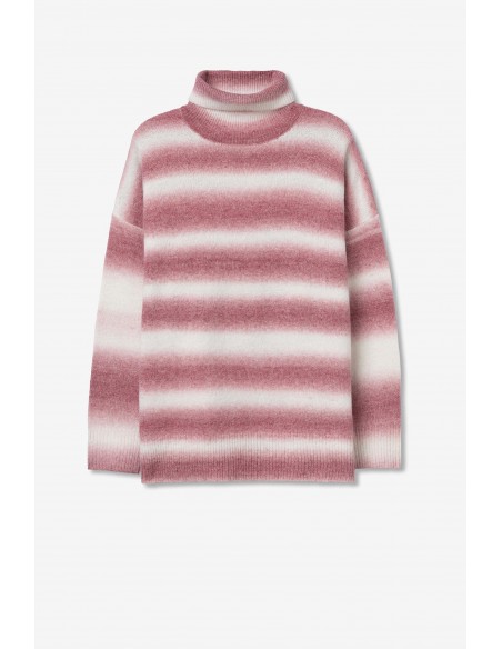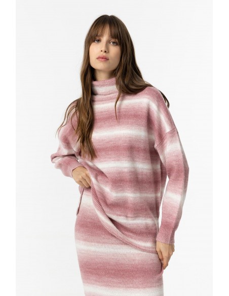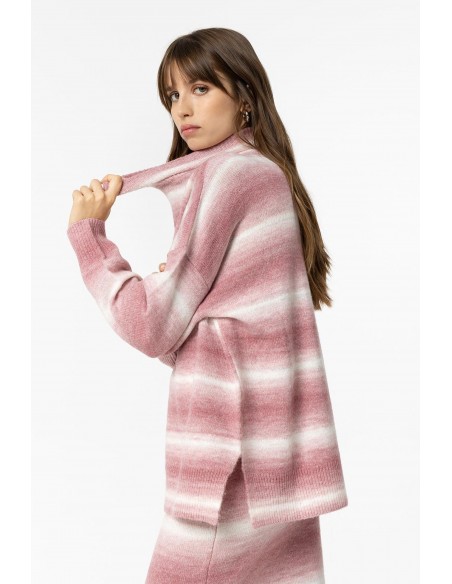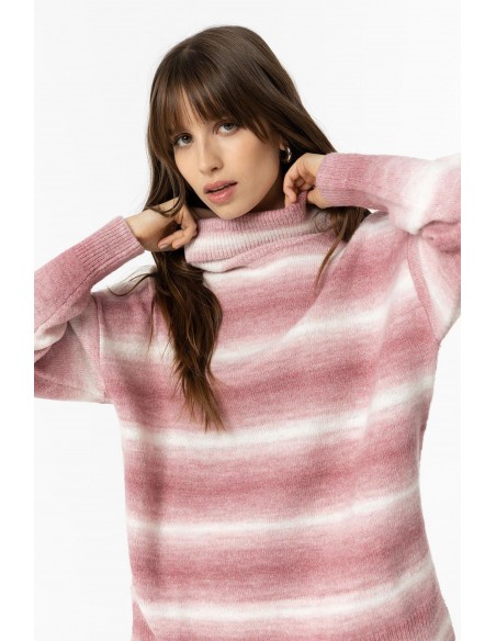 Este suéter de rayas rosa y blanco es la combinación perfecta de estilo y comodidad.
