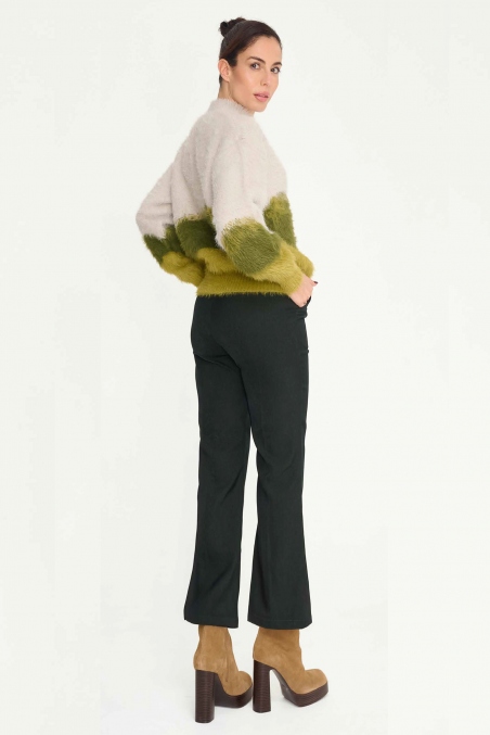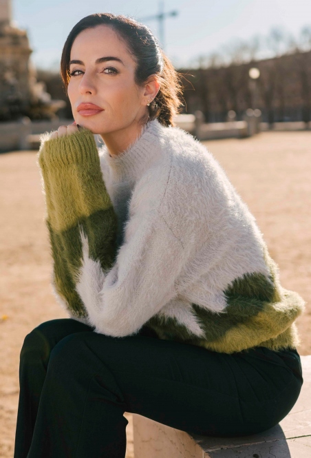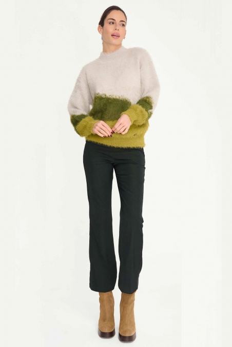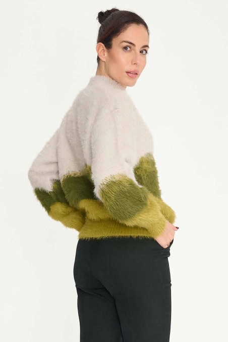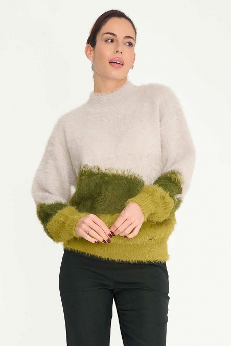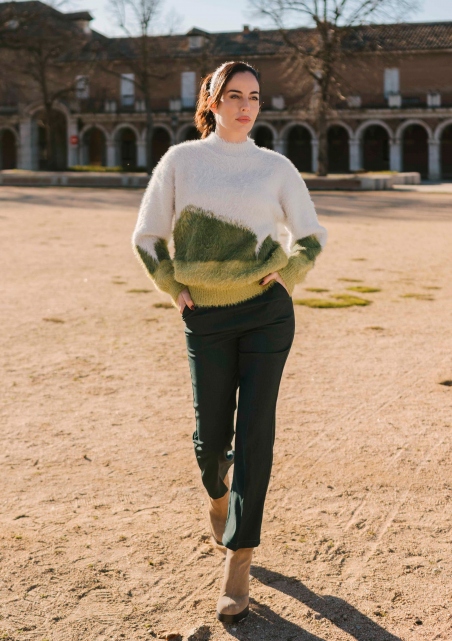Descubre la suavidad y el estilo de nuestro suéter verde y blanco, que combina confort y elegancia a la perfección.