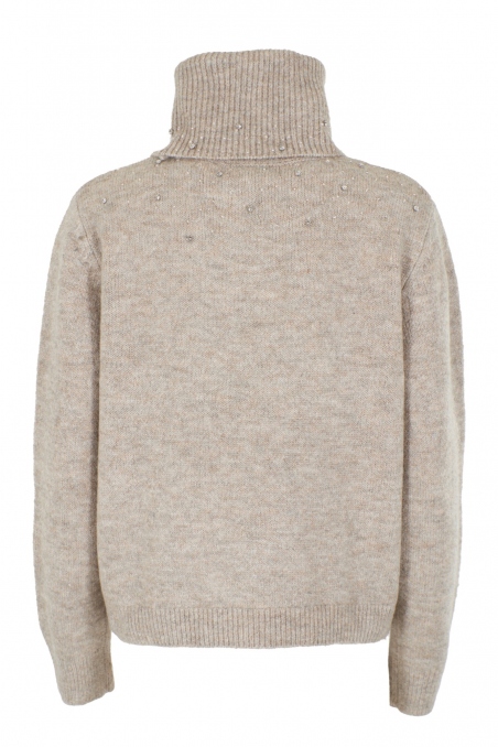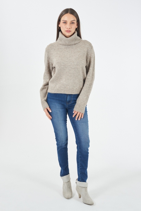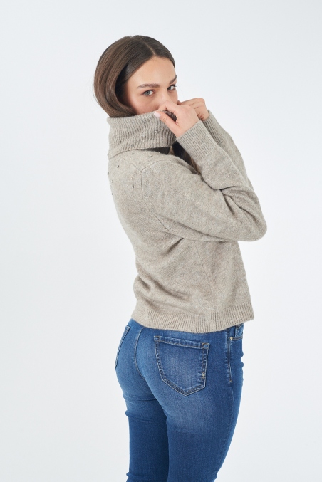 SUÉTER CUELLO ALTO TÓRTOLA CON PEDRERÍA