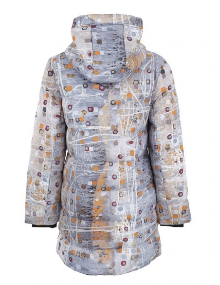 Abrigo de largo medio con capucha no desmontable. Elástico en los puños.