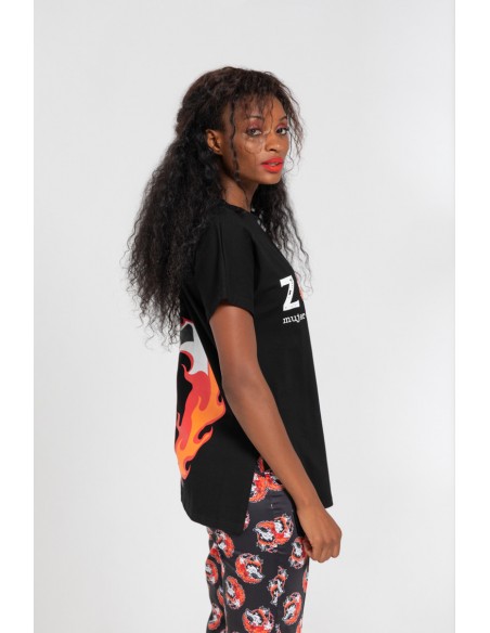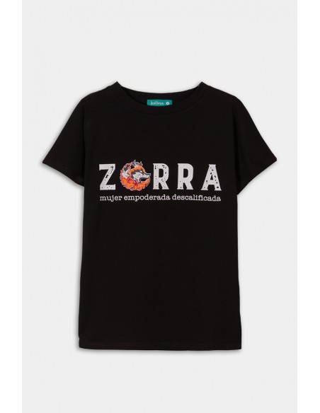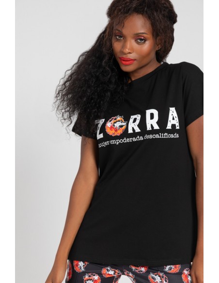 Print frontal Zorra con cola en llamas a la espalda.