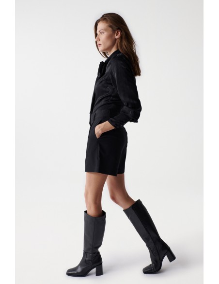 OUTLET CHAQUETA PLIEGUES NEGRA - YES ZEE Yes Zee J438 - GQ00 62,99 € 89,99 € Chaqueta corta estilo biker. Cuello redondo. Tejido polipiel. Cierre frontal con cremallera. Bolsillos laterales con cremallera. Detalle de pliegues en espalda. Color: Negro Comprar