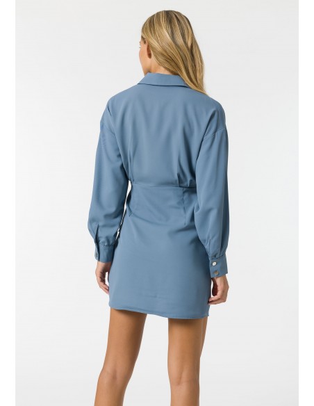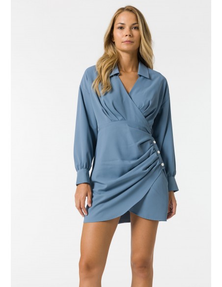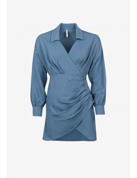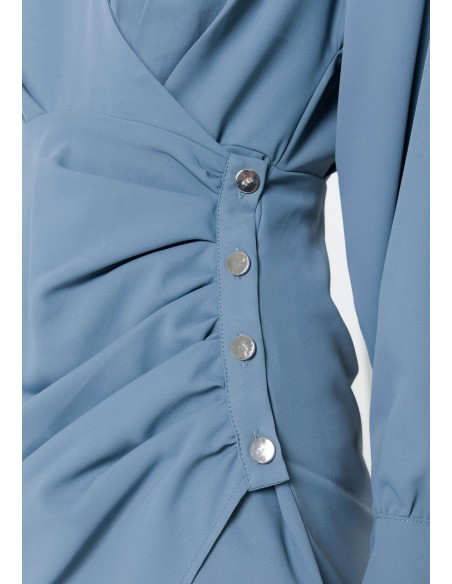 VESTIDO CRUZADO AZUL GRISÁCEO
